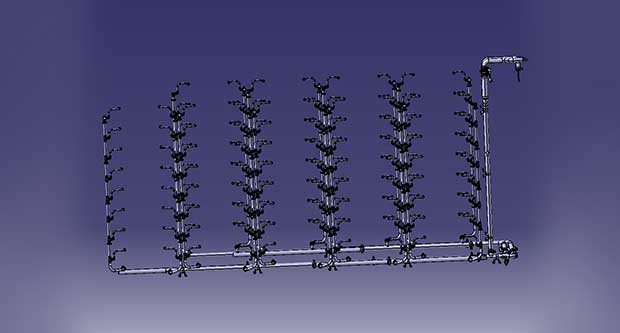 一級(jí)液冷主管采用ID50mm的金屬管或PE管,長(zhǎng)度共約15~20米; 二級(jí)液冷管路采用ID21mm或ID25的PA管,長(zhǎng)度共約